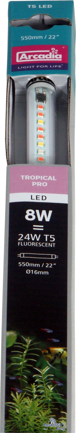 Arcadia T5 LED Tropical Pro is a compact LED lamp for mounting directly into a existing T5 lighting or aquarium cover. The Arcadia T5 lamp works together with all T5 ballasts and the Arcadia Ultra Seal lampholders. Arcadia T5 LED Tropical Pro.