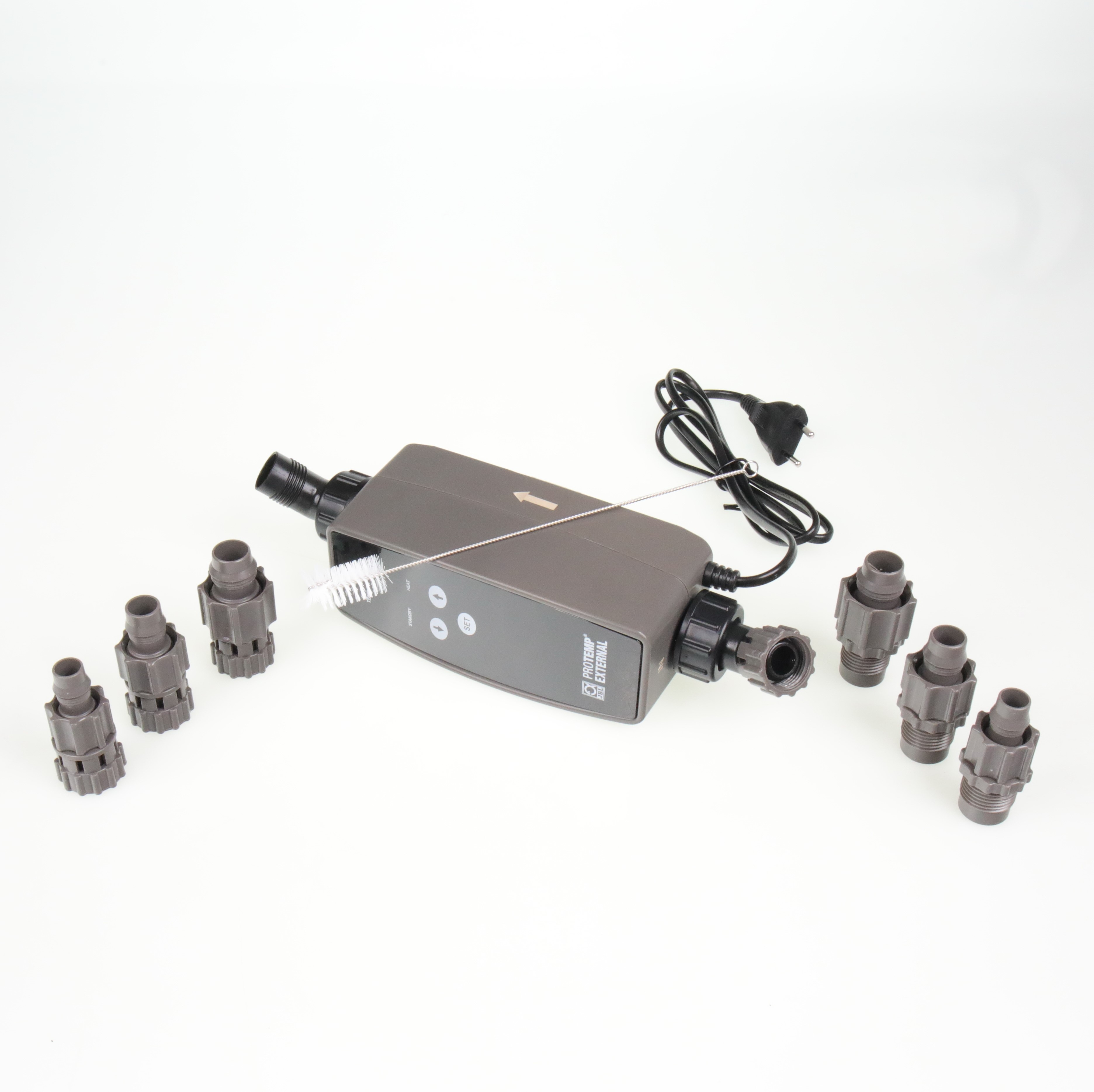 The external heater is installed in the return hose of an external filter or an external circulation pump. This ensures that no heating element is located directly in the aquarium.