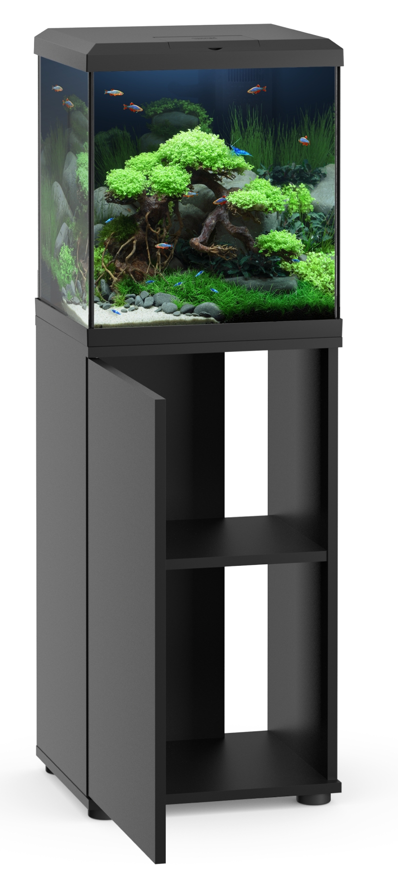 Juwel Vio Cube 54 is a modern cube aquarium that combines design and function in a compact footprint. With a tank height of 47 cm, the aquarium appears particularly deep and offers plenty of space for creative design - from planted aquascapes to classic community tanks. As a combination, you get a fully coordinated set consisting of an aquarium and matching cabinet - visually clean, stable, and with practical storage space for care accessories and food. Available in black or white, the Vio Cube 54 fits into almost any living environment and adds elegant accents as a compact eye-catcher.