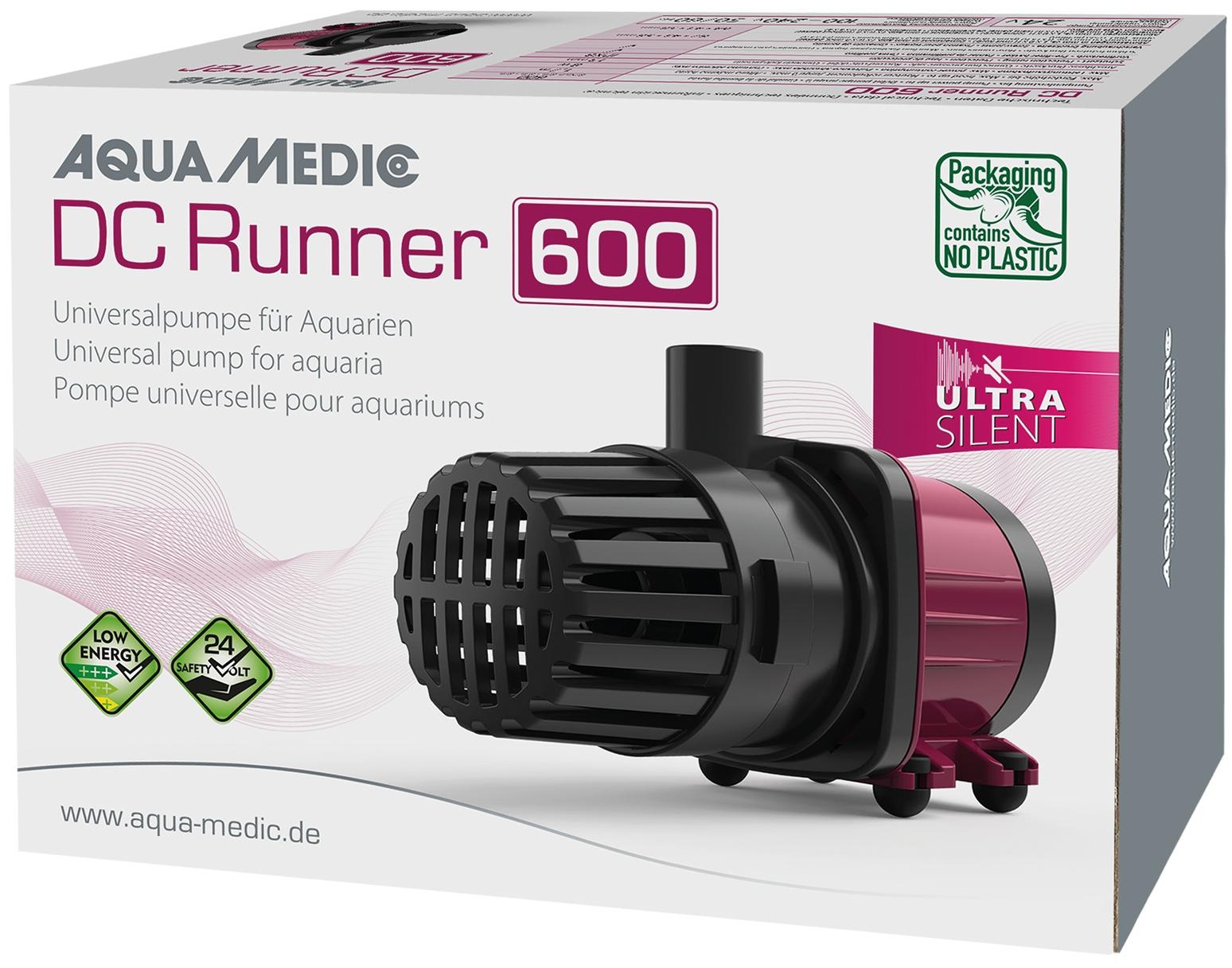 Aqua Medic DC Runner 600 ist eine stromsparende Universalpumpe für Süß- und Meerwasseraquarien. Die Magnetkreiselpumpe Aqua Medic DS Runner 600 besitzt einen gekapselten Synchronmotor. Alle Materialien sind meerwasserbeständig. Die Pumpe wird mit 24 V Sicherheitsspannung betrieben, der Transformator ist im Lieferumfang enthalten.