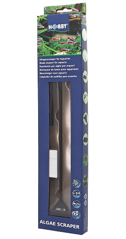 Der Hobby Algae Scraper ist ein innovativer und stylischer Klingenreiniger, der speziell für Aquarien entwickelt wurde. Mit seiner Gesamtlänge von 65 cm erreicht man mühelos jeden Winkel des Aquariums - auch bei größeren Becken.