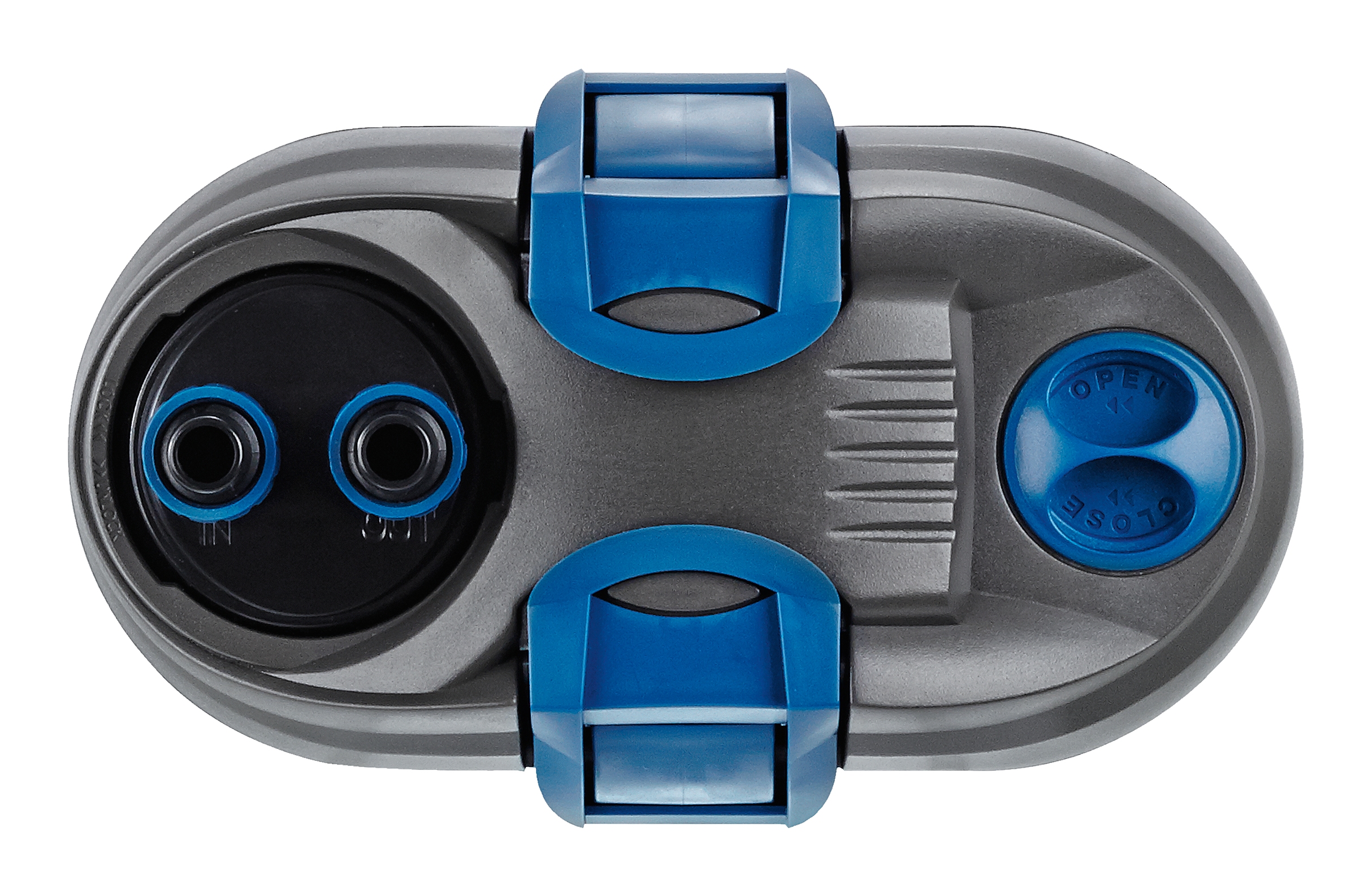 Der OASE FiltoSmart 100 ist ein kompakter und leistungsstarker Außenfilter für Aquarien bis ca. 100 Liter. Durch die mehrstufige mechanisch-biologische Filterung sorgt der Filter für klares Wasser und stabile Wasserverhältnisse im Aquarium. Trotz seiner hohen Pumpenleistung bleibt der FiltoSmart 100 angenehm laufruhig und arbeitet mit geringem Energieverbrauch. Der Außenfilter wird komplett mit Anschlussset geliefert und ist damit schnell installiert. Die praktische Selbstentlüftungsfunktion erleichtert die Inbetriebnahme, während der EasyClick-Öffnungsmechanismus eine einfache Wartung ermöglicht. Für die Reinigung ist der FiltoSmart 100 zusätzlich mit einer Absperrautomatik ausgestattet, die ungewollten Wasseraustritt beim Öffnen des Filters verhindert. Die Wasserdurchflussmenge kann am Ein- und Auslaufadapter individuell reguliert werden.